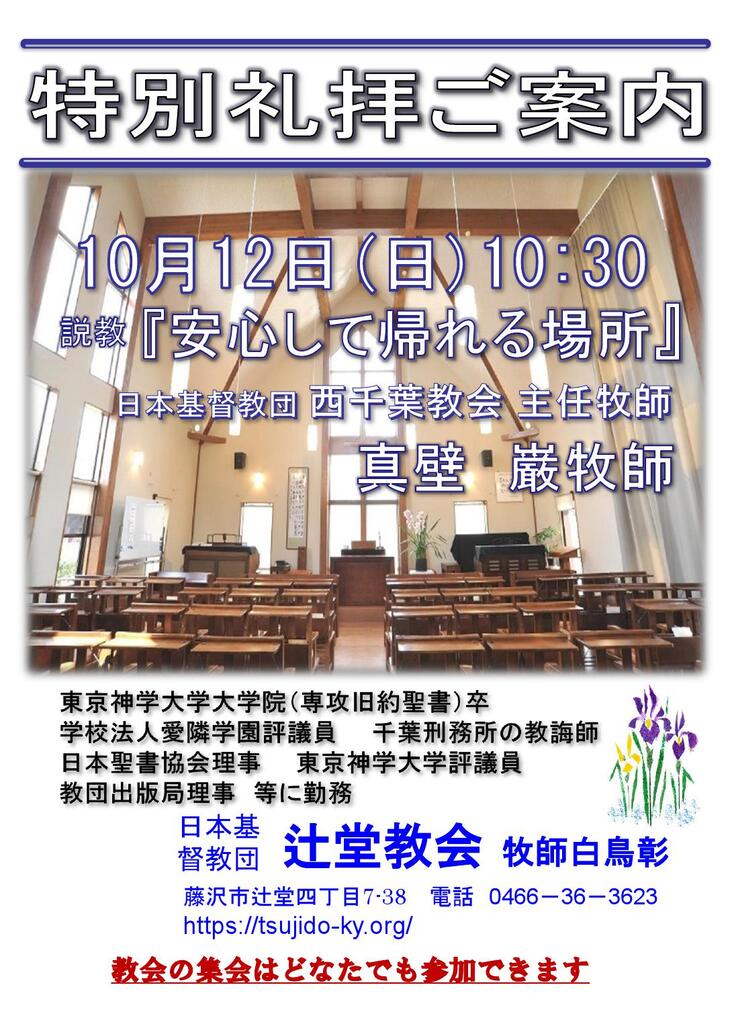 10月12日(日)10時30分からです。聖書箇所はポスターの下欄をご覧ください。